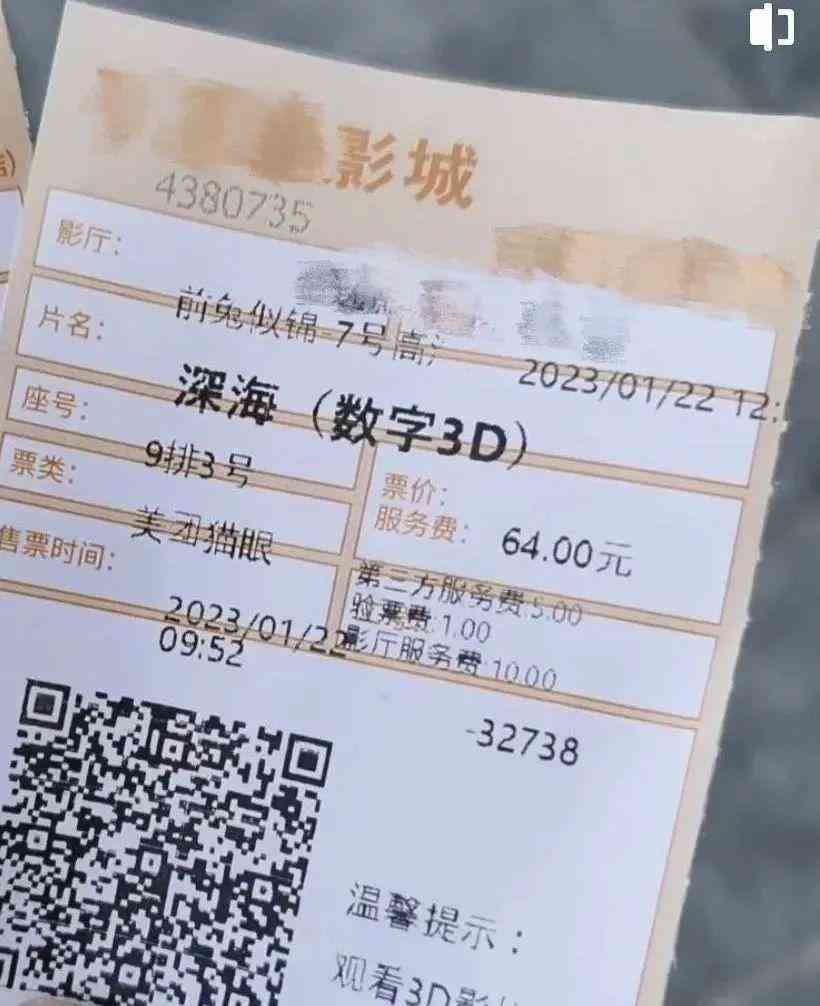 三類是巧立名目加價的。比如初一我有個朋友曬出的北京某影院《深?!菲备?,實付了80元,由票價64元、網售服務費5元、“驗票費”1元和影廳服務費10元構成。但實際上,票面價格由電影票價、網售服務費(3-5元)和影廳服務費(票價的10%)三項組成。其中只有票面價格是進入國家電影專項資金、片方和院線分賬的。網售服務費由網售平臺收取,不進入分賬。一般如果不是特殊影廳,都不能收取影廳服務費,更根本沒有“驗票費”這一說。所以這11元差額被影院截留了。觀眾實際付出了高票價,但統(tǒng)計數(shù)據(jù)顯示不出來。過去幾年,影院非常艱難,甚至把前幾年的盈利都虧進去了。春節(jié)期間想多掙錢無可厚非,但堅決不能飲鴆止渴,違法違規(guī)。