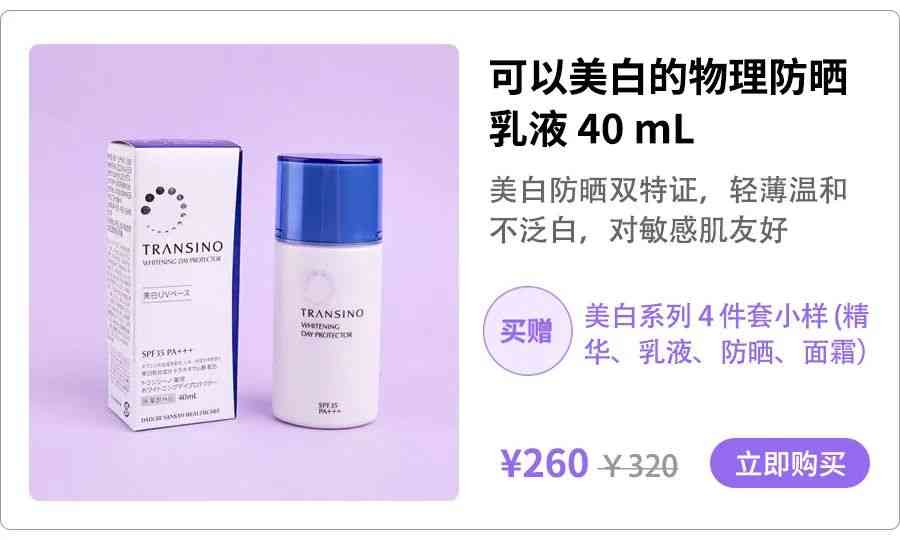 如果要把美白和防曬結(jié)合起來呢,傳明酸可能是個值得試試的好東西。傳皙諾(TRANSINO)這一支防曬美白乳液,自然是不錯的選擇。