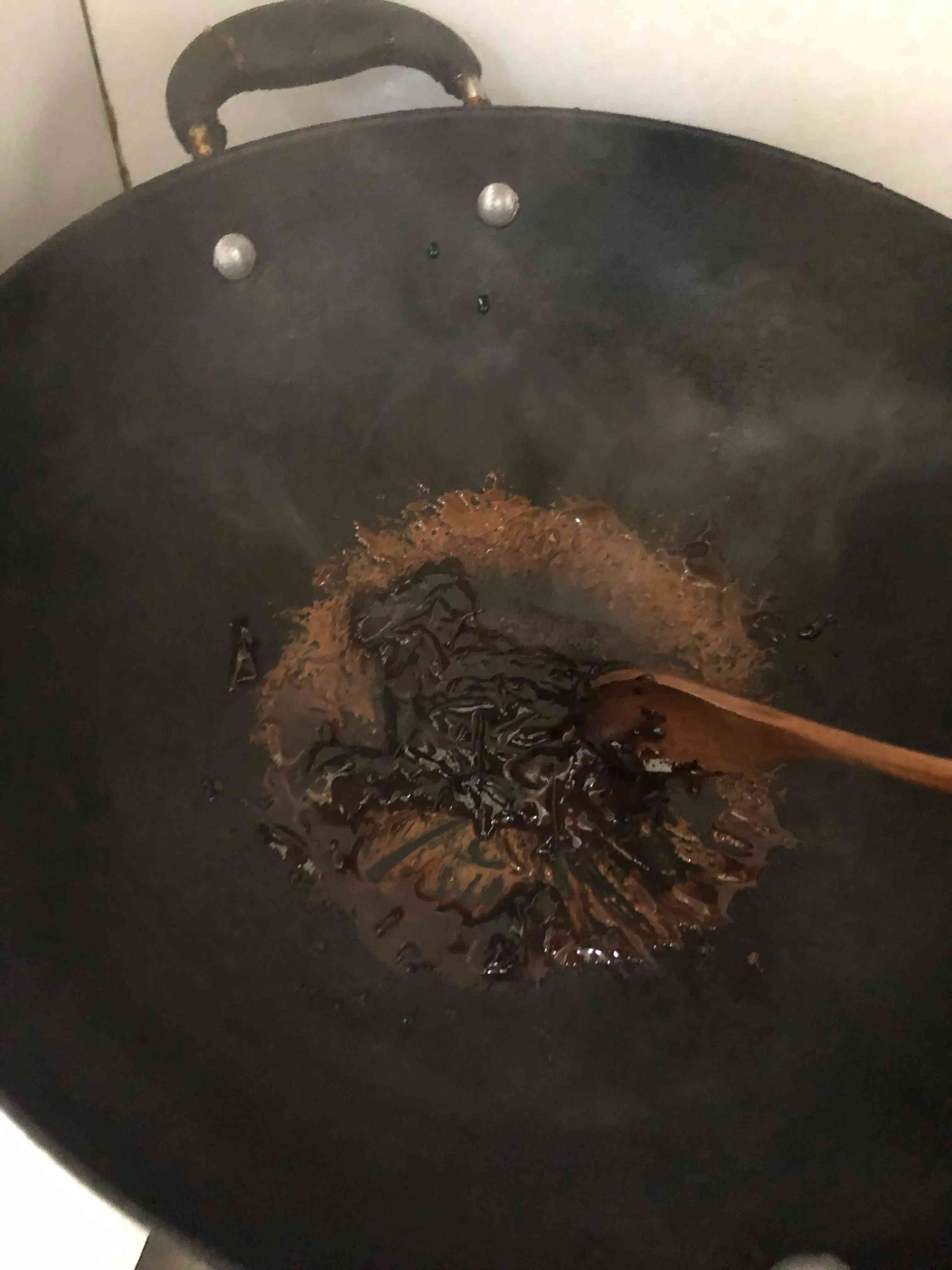 1、首先,鍋刷干凈不需要燒干,倒上些紅糖,再加一撮今年的新茶,小火慢燒不斷攪拌。