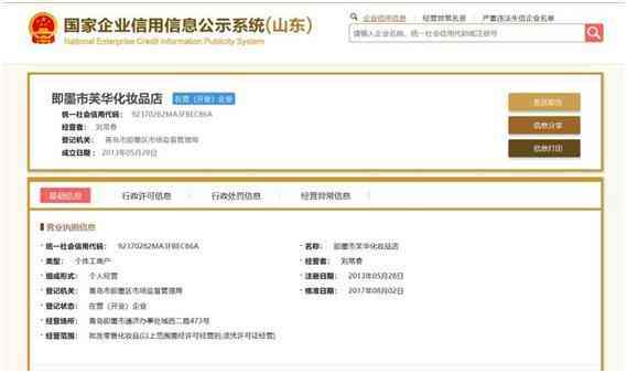 芙華美業(yè)劉氏痣道營(yíng)業(yè)執(zhí)照信息顯示,經(jīng)營(yíng)范圍為批發(fā)零售化妝品。登記機(jī)關(guān)為青島市即墨區(qū)市場(chǎng)監(jiān)督管理局。