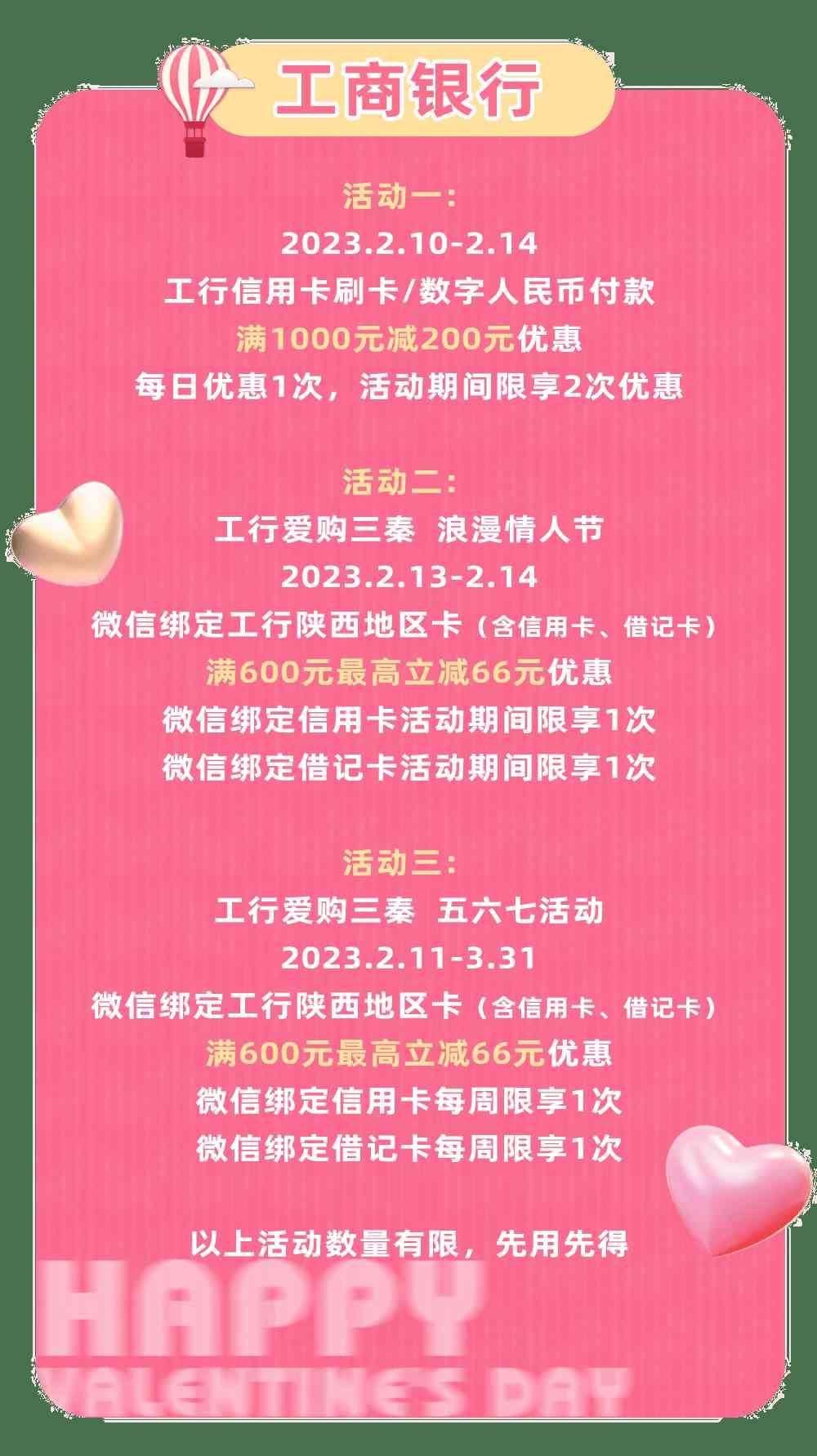 ②200元美妝券兌:單筆交易滿500用100元,不與商場其他活動同享。2月14日當天券升值50%使用,使用規(guī)則不變(滿500減100)。