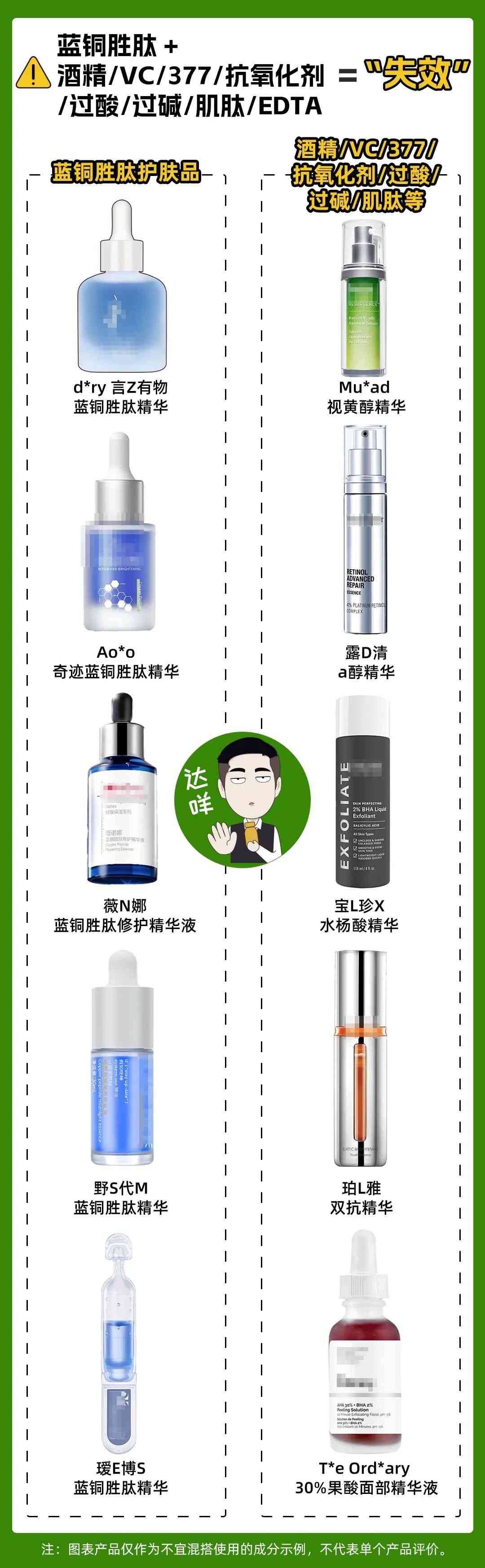 另外,卡片中列舉的護膚品作為不宜混用的成分示例,無法覆蓋到你們使用的所有產(chǎn)品。還是需要大家舉一反三,注意搭配。