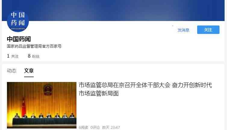 國家藥品監(jiān)督管理局在百度開通 “中國藥聞”百家號后,百家號的內(nèi)容將與官方微信號“中國藥聞”發(fā)布的內(nèi)容進(jìn)行同步。
