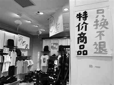 接到舉報(bào)后,記者跟隨執(zhí)法人員趕到現(xiàn)場(chǎng)發(fā)現(xiàn),這家店鋪門頭牌匾已經(jīng)拆除,櫥窗上張貼著“結(jié)束營業(yè)”“全場(chǎng)50元”等廣告,店內(nèi)墻壁上也張貼著“特價(jià)120元”“虧本也賣”“關(guān)門生意”“已售空”“再見”等字樣,賣場(chǎng)里隨意擺放著衣服、皮質(zhì)提包等商品。店里雖有四五名顧客,但都在查看商品、詢問價(jià)格,幾乎無人購買。