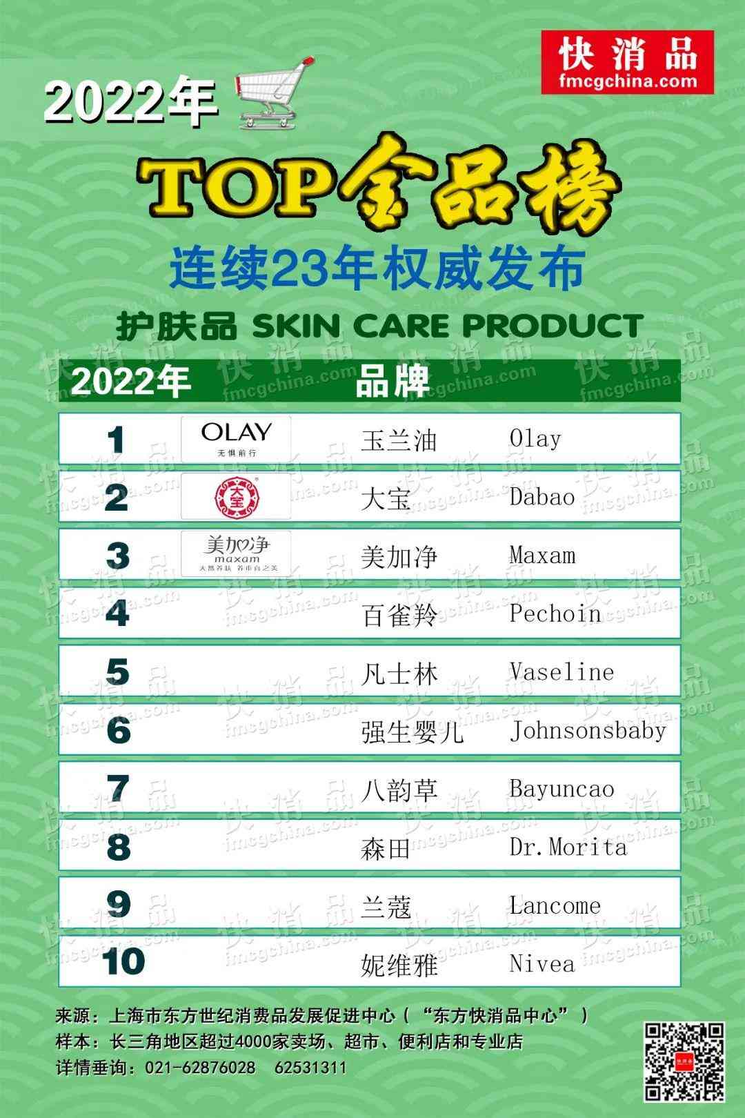 (快消品訊)由東方快消品中心同行業(yè)領(lǐng)先的全媒體——《快消品(網(wǎng))》2022年對長三角地區(qū)超過4000家的賣場、超市、便利店和專業(yè)店等線下主要渠道進行大數(shù)據(jù)零售監(jiān)測,連續(xù)第23年權(quán)威完整發(fā)布“大快消TOP金品榜”,涵蓋近230個大快消品類,被譽為“行業(yè)風向標”!歡迎持續(xù)關(guān)注《快消品(網(wǎng))》全媒體(fmcgchina)。