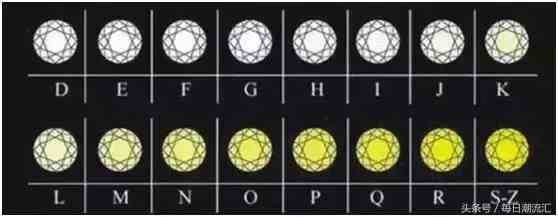 鉆石按國際從無色—黃色顏色分級,一共分為23個(gè)等級,分別用字母D—Z來表示。