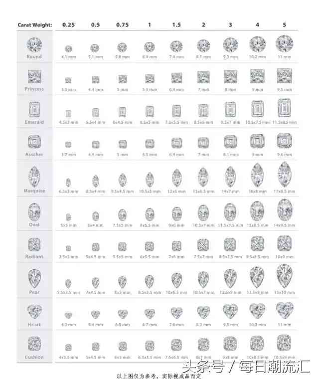 ▼鉆石形狀大小對照圖(點(diǎn)擊圖片,放大查看,上面的內(nèi)容會(huì)更清晰)