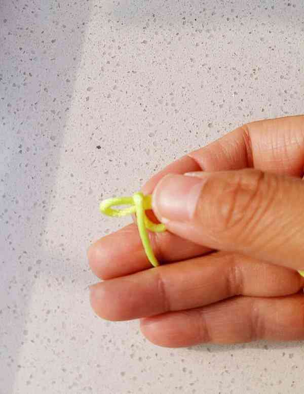 1、將繩子繞個小圈,用手捏住。
