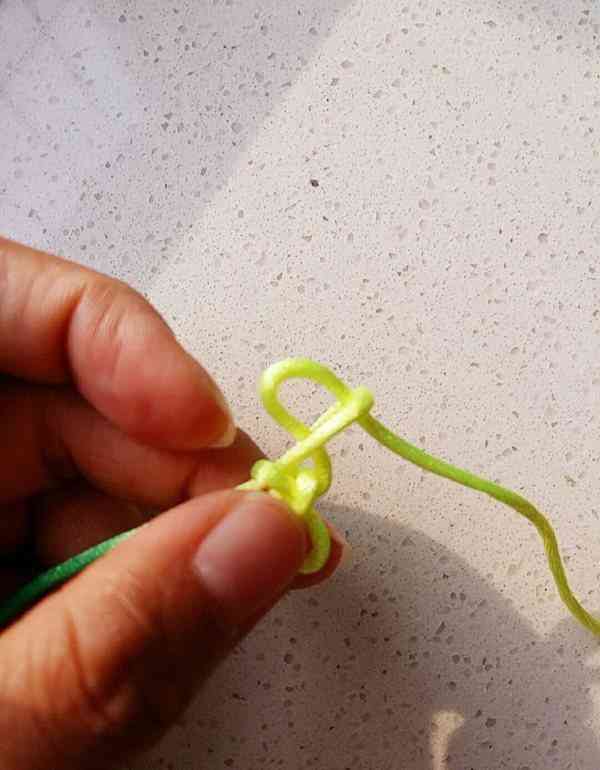 2、將左邊的繩也繞個小圈套在右圈里,拉緊。