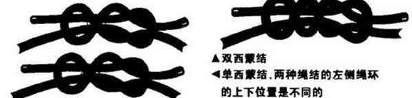 (單西蒙結(jié)和雙西蒙結(jié),兩種繩結(jié)的左側(cè)繩環(huán)的上下位置是不同的)