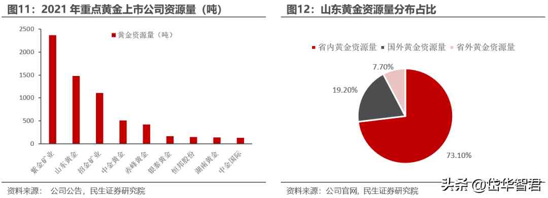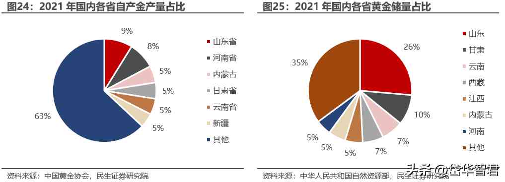 資源儲量領(lǐng)先行業(yè),主要分布于山東省內(nèi)。我國黃金儲量分布集中,山東省黃金產(chǎn)量位居全國。