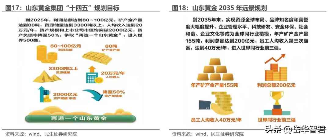 山東黃金集團“十四五”戰(zhàn)略目標規(guī)劃明確。根據(jù)集團公司十四五戰(zhàn)略規(guī)劃,到2025年,自產(chǎn)金產(chǎn)量達到80噸,資源儲量達到3300噸以上,目標利潤總額達到80億元至100億元。