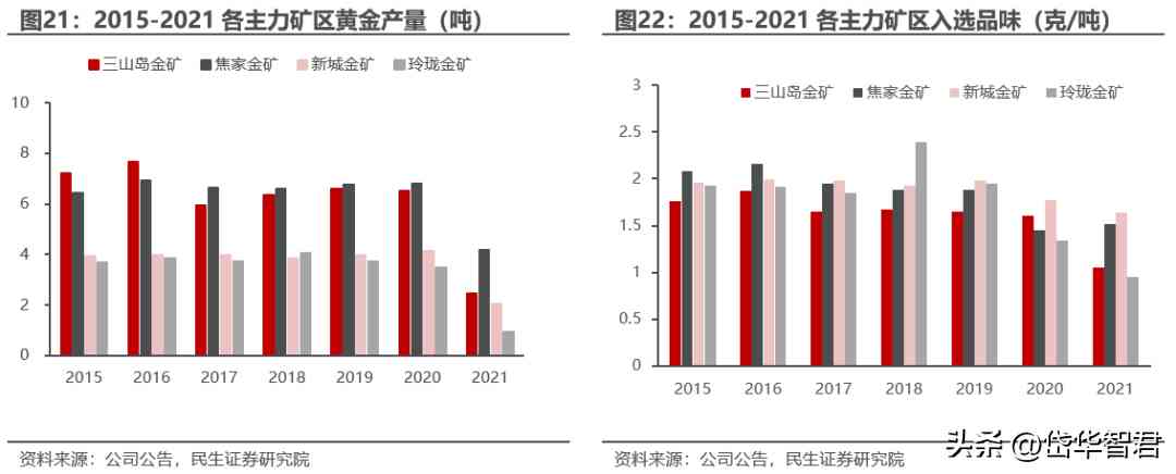 2021 年公司業(yè)績下滑主要受山東省內(nèi)安全檢查的影響,礦山局部停產(chǎn),導(dǎo)致公司自產(chǎn)金產(chǎn)銷量大幅下降,歸母凈利潤有所下滑,隨著各礦山復(fù)產(chǎn),2022年業(yè)績逐步恢復(fù)。