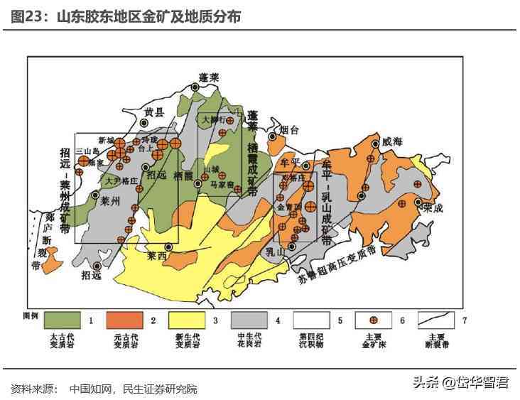資源方面,萊州地區(qū)位于斷裂地質(zhì)構(gòu)造帶,區(qū)位優(yōu)勢顯著。膠東地區(qū)斷裂構(gòu)造控制了區(qū)內(nèi)金礦床的形成與分布,斷裂帶地下巖漿運動巨裂,多半伴隨有火山爆發(fā),地震,為金礦形成提供了所需的溫度環(huán)境和物質(zhì)構(gòu)造。萊州市位于三山島斷裂帶、新城-焦家斷裂帶、招平斷裂帶的交界處,在三者的共同作用下,形成了招遠-萊州成礦帶。其中,新城-焦家斷裂帶上分布礦產(chǎn)最多,該斷裂帶控制了新城、焦家、馬塘、望兒山等一系列焦家式金礦床。