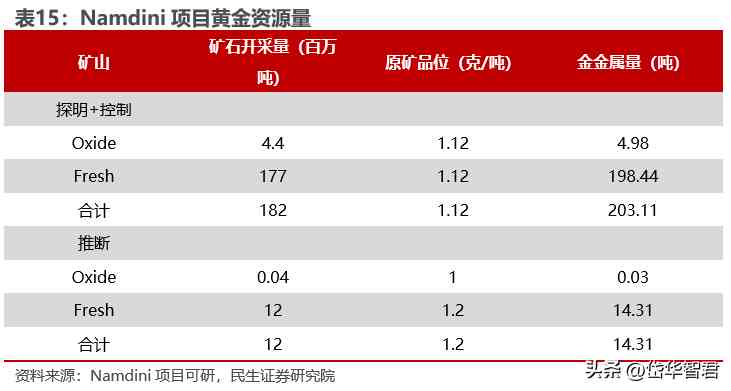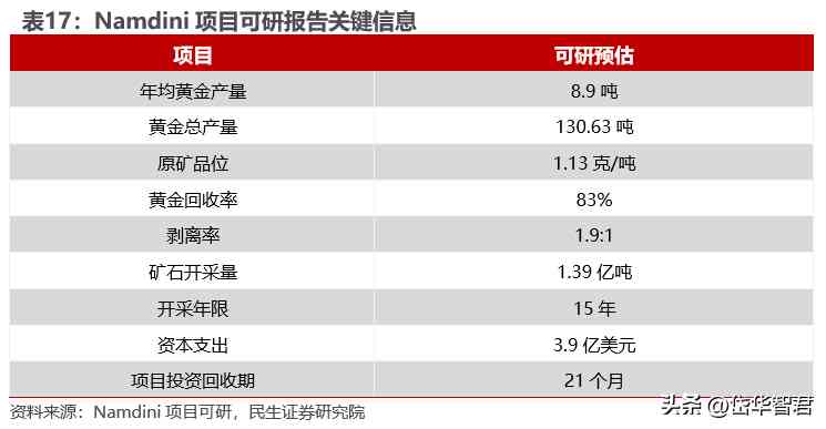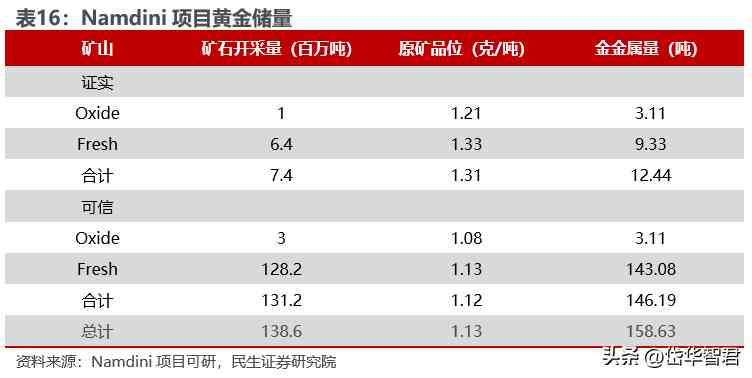 儲量方面,Namdini項目擁有證實和可信金儲量158.6噸,原礦品位為1.13g/t。