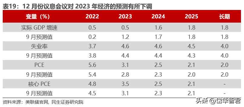 2022年12月份議息會議對經(jīng)濟預(yù)測進一步下調(diào)。
