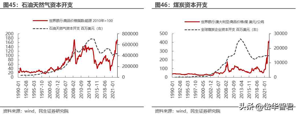 在本輪經(jīng)濟周期中,全球正經(jīng)歷碳中和轉(zhuǎn)型期,即便在能源價格大幅上行的背景之下,傳統(tǒng)能源的資本開支依然受到影響,此外以銅為代表的上游大宗商品受能耗指標限制、資源日漸匱乏等因素影響也出現(xiàn)資本開支不足的局面。
