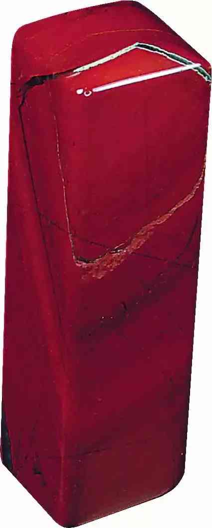 是一種含有赤鐵礦的紅色微晶質(zhì)石英。碧玉一般都不透明,貝殼狀斷口,外表就像紅磚,主要產(chǎn)地為印度、美國(guó)、俄羅斯、委內(nèi)瑞拉等國(guó)家。一個(gè)印章50 ~ 100 元。戴碧玉可以增進(jìn)血液循環(huán),疏通血?dú)猓委燂L(fēng)濕及關(guān)節(jié)炎。