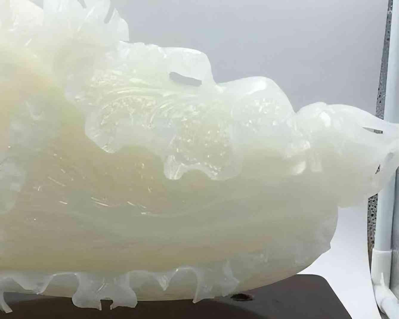 與和田玉相比,阿富汗玉硬度較低,顆粒較為粗糙,但透度相對(duì)較好。