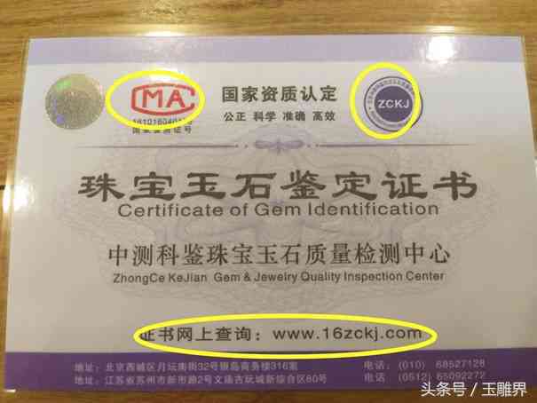 正規(guī)鑒定證書上面都會有“CMA”以及“zckj”的標識。