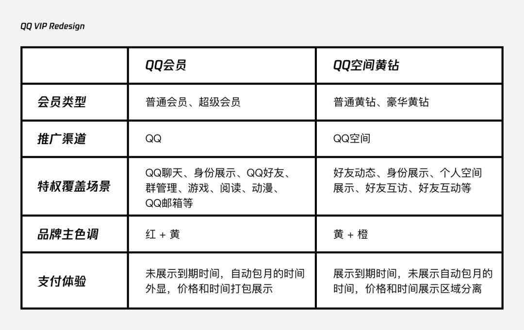 QQ會員和QQ空間黃鉆是QQ平臺上早已運營多年的會員體系,在會員類型、推廣渠道、特權(quán)覆蓋場景、界面風格、支付體驗等方面存在不少差異。