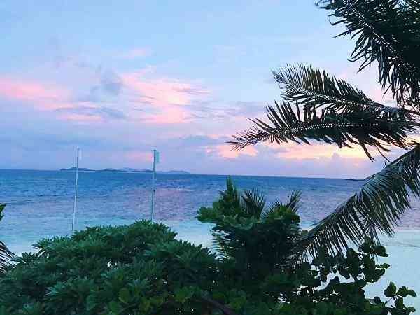 用晚餐與夕陽緩解一天的疲乏*晚餐后別著急走,有彩蛋,會有島上的工作人員挨桌的彈琴唱歌,F(xiàn)OR FREE ~ 歌曲可由你來點(diǎn),當(dāng)然國歌是肯定不會了, 而且前提是你還未離席 *而我們是最后一天才知道,每天基本吃完飯就跑到長椅看夜空了;說到夜空,沒帶單反,沒法拍下來,但你看過李安的電影派的奇幻冒險(xiǎn)中的夜空么,沒錯(cuò),就是那樣。D3:從這一天開始基本就是享受面朝大海,春暖花開了;當(dāng)然,不甘平凡的你也可以去看看Daily activity的安排,在Bar的旁邊有兩塊黑板就是Daily activity了,一塊是需要預(yù)約的activity時(shí)間表,一塊是不需要預(yù)約的activity時(shí)間表,時(shí)間一般從11點(diǎn)左右就開始了,晚上6點(diǎn)就都結(jié)束了,活動里不需要預(yù)約的有沙灘足球、排球、吉他課程,竹籃編織課程之類,需要預(yù)約的則是深潛、浮潛、海釣、爬山探險(xiǎn)等,所謂預(yù)約則是去島上的reception(酒吧對面)告訴你想?yún)⒓拥幕顒訒r(shí)間和人數(shù)。