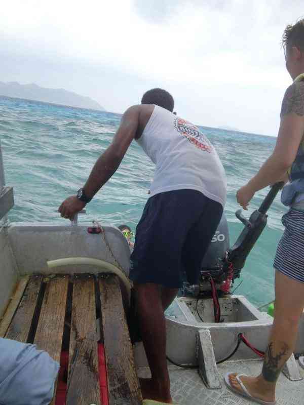 當(dāng)然我們沒能走到山頂,因?yàn)樯仙巾數(shù)臈5朗窃趨擦置⒌纳钐帲螒B(tài)各異、五彩繽紛的壁虎光是在樓梯起始處就已經(jīng)數(shù)不勝數(shù)了,媳婦實(shí)在害怕,我也是,,,,,而浮潛則是必選項(xiàng)了,在設(shè)備領(lǐng)取處,除10 FIJI刀的life jacket需要支付,其他如護(hù)目鏡與腳蹼都是Free,船上救生小哥會問一些關(guān)于是否會游泳、是否有浮潛經(jīng)驗(yàn)之類問題,我們幾個(gè)北方旱鴨子被安排跟隨一個(gè)身形矯健的小哥下水,小哥散發(fā)著即使拎著我們四個(gè)人依然可花式把我們救上船的光芒 ↓↓↓↓