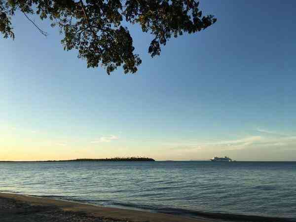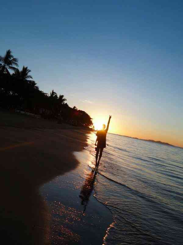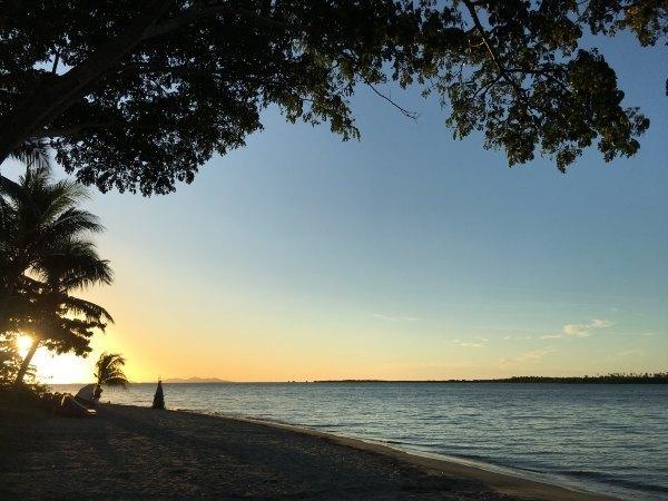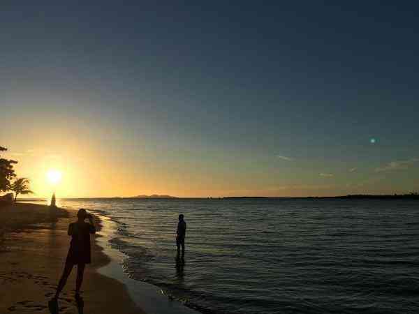 盤中的大部分基本上沒什么特色,哪里都可吃到,唯獨(dú)白色小碗中的,才算得上是極具FIJI當(dāng)?shù)仫嬍程厣氖澄?,椰子汁和雞肉塊、蔬菜的秘之搭配,不過確實(shí)還不賴,值得一試。因第二天一早的飛機(jī)去香港,所以午餐后轉(zhuǎn)轉(zhuǎn)走走,就早點(diǎn)回了酒店晚餐后趕在落日前走到酒店的沙灘上,不同于外島的白沙,本島的黑沙灘顏值雖沒白沙灘高,但依然細(xì)膩柔軟,舒服十分落日夕陽套圖奉上,結(jié)束FIJI 的旅程 ↓↓↓↓↓