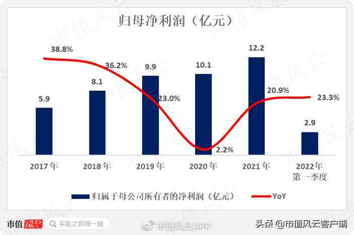 公司2021年的歸母凈利潤(rùn)為12.2億,為近幾年的新高水平,同比增長(zhǎng)約21%。增長(zhǎng)在今年一季度依舊延續(xù),同比增長(zhǎng)23.3%,達(dá)到2.9億。