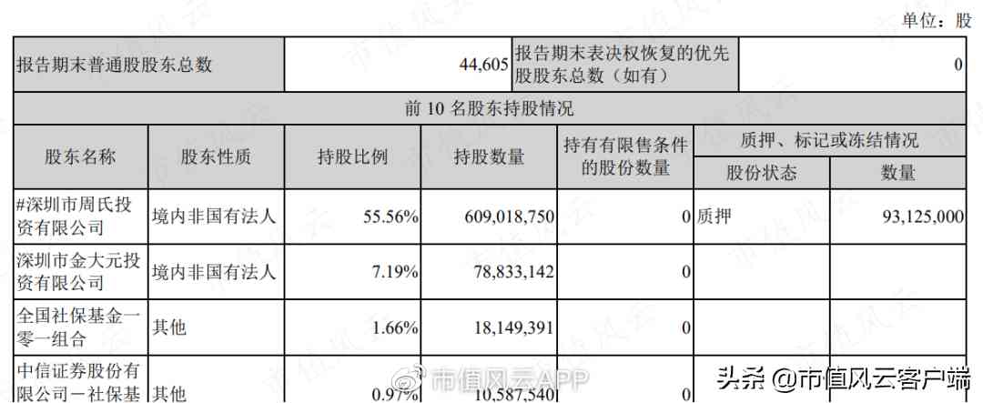公司目前最大的股東為深圳市周氏投資,持股比例55.56%。