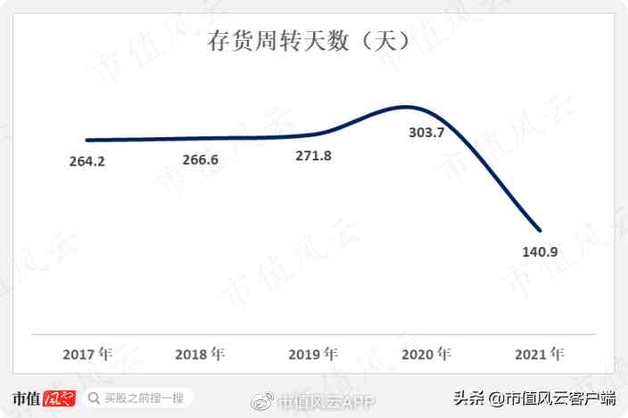 周大生營(yíng)業(yè)收入的增長(zhǎng)帶來(lái)的便是存貨周轉(zhuǎn)能力的增強(qiáng),周轉(zhuǎn)天數(shù)已經(jīng)從2020年的303.7天下降至了2021年的140.9天。