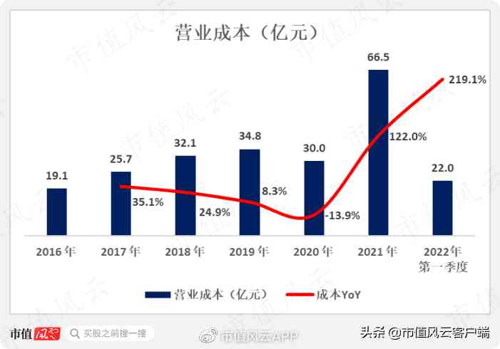 今年一季度增幅擴(kuò)大,成本22億,同比增長(zhǎng)超過(guò)200%。