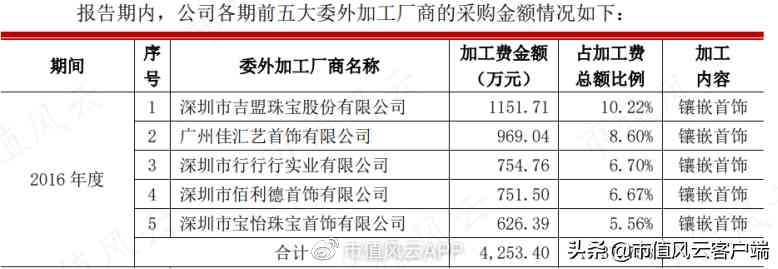 公司自己并不擁有工廠,而是將生產(chǎn)活動(dòng)外包給專(zhuān)業(yè)的珠寶首飾生產(chǎn)商。周大生曾在招股說(shuō)明書(shū)中披露自己的前五大委外加工廠商。