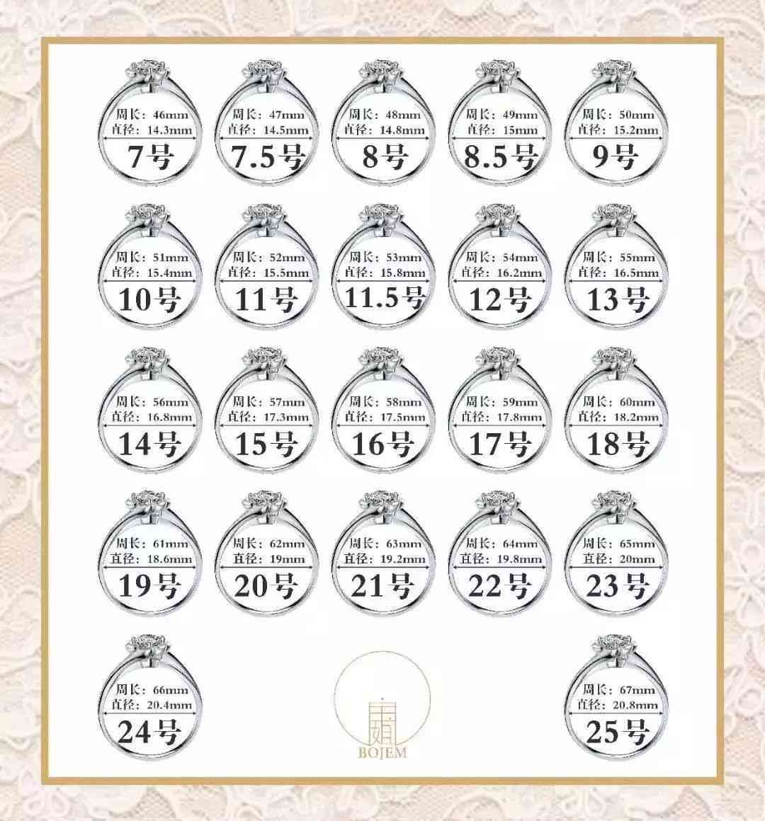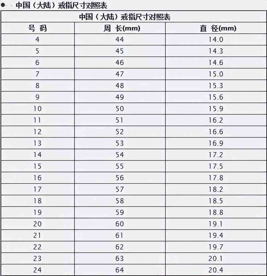 當(dāng)然,根據(jù)對(duì)照表,不同版的戒圈,可以實(shí)現(xiàn)換算。比如你的港版是12#,對(duì)應(yīng)的直徑為16.5,周長(zhǎng)為52。這組數(shù)據(jù),在美版中,就是6號(hào)。