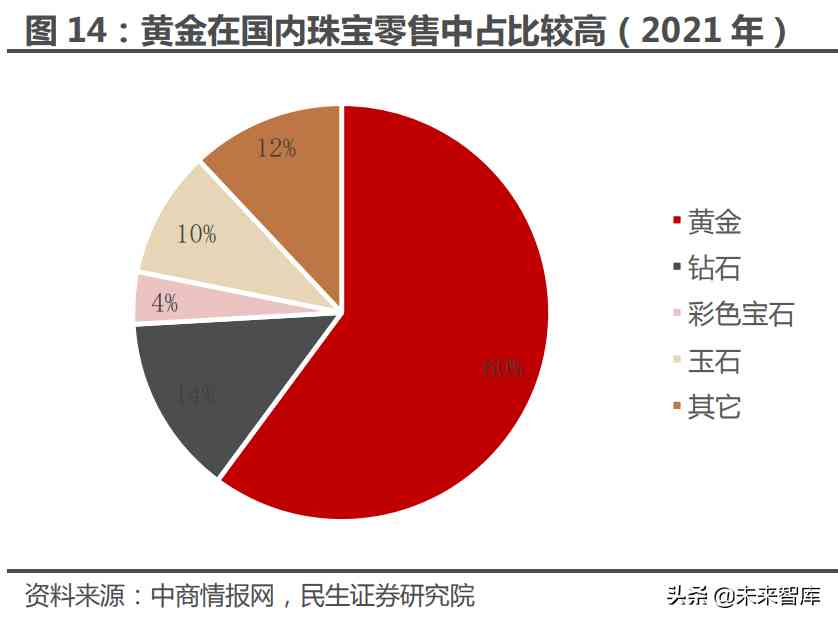 綜上,自從放開黃金的自由交易之后,國內(nèi)珠寶市場快速走向繁榮,龐大的消 費者基數(shù)加持之下,滲透率由低到高的過程中,行業(yè)在過去的 20 余年時間中整體 表現(xiàn)出較強的成長屬性。同時,又由于受到黃金為主的產(chǎn)品結構影響,國內(nèi)珠寶行 業(yè)又表現(xiàn)出一定周期屬性。而除黃金單品之外,鉆石、彩色寶石以及玉石等產(chǎn)品也 具備可觀的市場容量,成為驅動我國珠寶市場規(guī)模增長不可忽視的重要動力。
