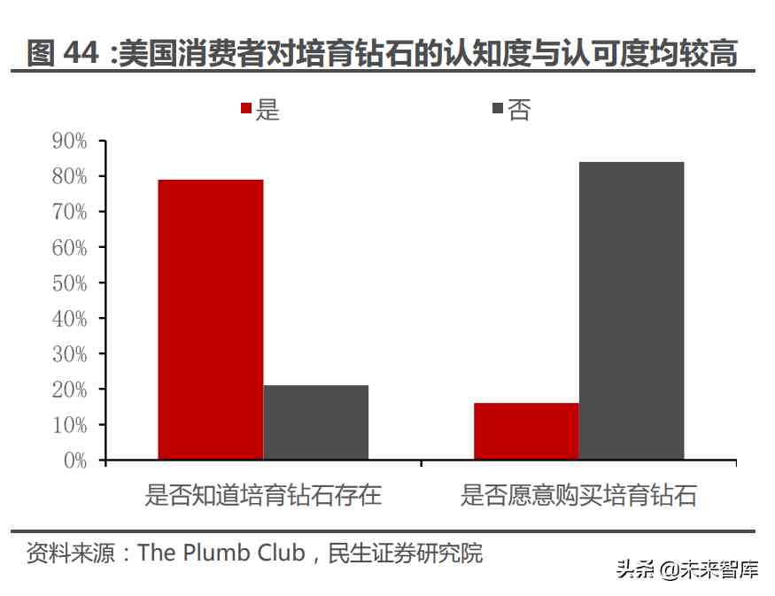 美國市場已經(jīng)充分打開,國內(nèi)培育鉆石市場潛在空間可觀。根據(jù) The Plumb Club 在 2021 年的調(diào)研數(shù)據(jù),約 79%的美國消費者對培育鉆石的存在已經(jīng)有所認 知,約 16%的美國消費者愿意購買培育鉆石,說明培育鉆石在美國的接受度已經(jīng) 達到一定水平;對比之下,國內(nèi)培育鉆石市場目前尚處于初級階段,無論是認知度 與認可度均處于較低水平,需要品牌商繼續(xù)推進消費者教育。國內(nèi)消費者對培育鉆石的潛在接受度是比較高 的,約 68%的國內(nèi)消費者認可培育鉆石是真鉆石,并且約 81%的消費者愿意在“看 起來一樣”的情況下接受培育鉆石??紤]到培育鉆石的性價比優(yōu)勢,以及我國近年 來持續(xù)上行的婚戀成本,疊加”悅己”消費的逐步升溫,培育鉆石在國內(nèi)市場的前 景比較樂觀,有望為我國珠寶市場貢獻新的增量。(報告來源:未來智庫)