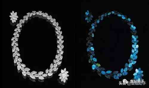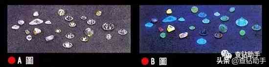 正常光線和紫外線照射下鉆石顏色的對比