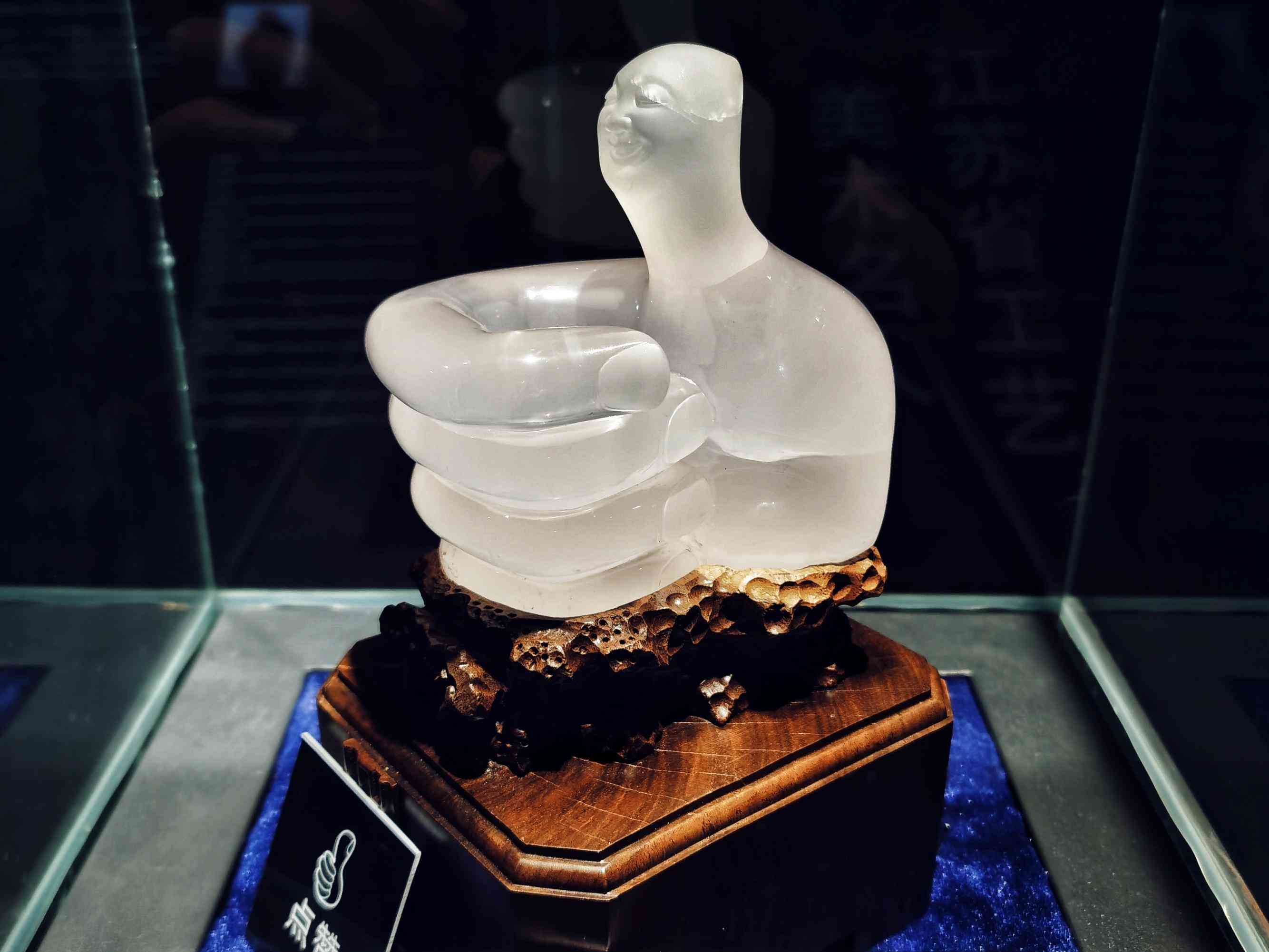 隨后的每一個展廳都空間開闊,黑暗的環(huán)境中強光照亮世界各地不同品種的水晶和雕刻得巧奪天工的水晶工藝品。形如多層山一般的綠幽靈、發(fā)絲細(xì)密的黑發(fā)晶、金光輝煌的“世界鈦金大王”……流溢的晶瑩光澤令我驚艷,亦令我沉醉不已。甚至還真的有一座水晶宮殿,水晶回廊通向幽深處一座亭閣,只可惜黑暗中缺了一位龍王,打破了胡思亂想的幻境。