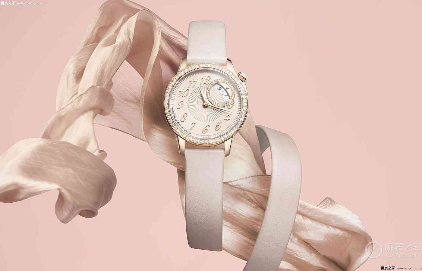 腕表店鋪:江詩丹頓在2020年,發(fā)布了全新égérie伊靈女神系列女士腕表,此系列取名自古羅馬神話中的伊靈女神,而在設(shè)計上,腕表也是從高級時裝世界中,汲取多樣靈感。去年6月份,又以我國傳統(tǒng)華服中的“披帛”,既古代女子服飾上的一種配飾,融入進(jìn)腕表設(shè)計中,特別創(chuàng)作了這枚中國限量款作品。腕表采用粉紅金打造30毫米表殼,表款亮點在于,首次使用帶乳光色澤的黛粉色表盤,VC通過機(jī)刻雕花工坊的手工雕刻,給盤面裝飾上了“織錦”工藝,讓其呈現(xiàn)的精致衣物褶皺效果。而精巧的偏心式表盤布局,使用34顆明亮式切割鉆石,圈畫出弧形日期顯示窗口,而整表又被62顆鉆石表圈圍繞。表款采用石英機(jī)芯,表帶選擇上,江詩丹頓配備了同樣為黛粉色的,雙環(huán)繞式小牛皮表帶,以及一條可快速替換的鱷魚皮表帶。