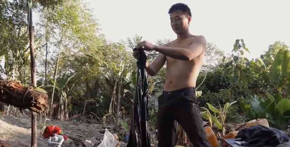 這里的生活非常艱苦,他們常年生活在森林里,所有的物質(zhì)都需要從外面運過來,除了食物和衣物外,洗澡水也是一大問題。李士豪和礦工們平時都是用之前礦洞積下的污水洗澡,這些水臭不可聞,根本沒法起到什么清潔身體的作用,但是他們別無選擇。而且,他們的住處也就是一個臨時搭起來的棚子,別說有什么家具家電,就連基本的擋風(fēng)避雨都做不到。李士豪每周都會給礦工們發(fā)放生活物資,每個人每周都有三包咖啡速溶粉、一包煙和兩小袋洗發(fā)液。