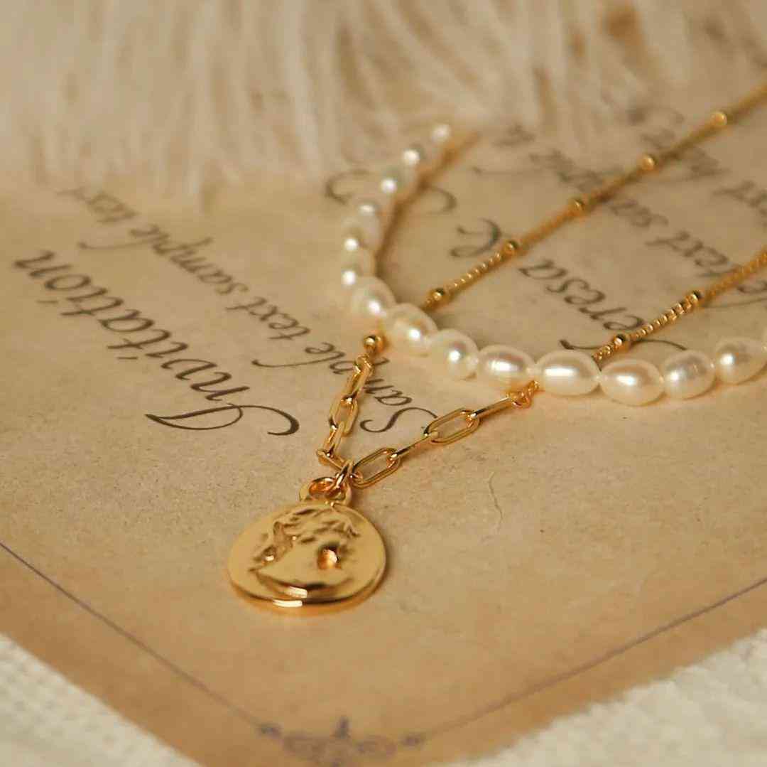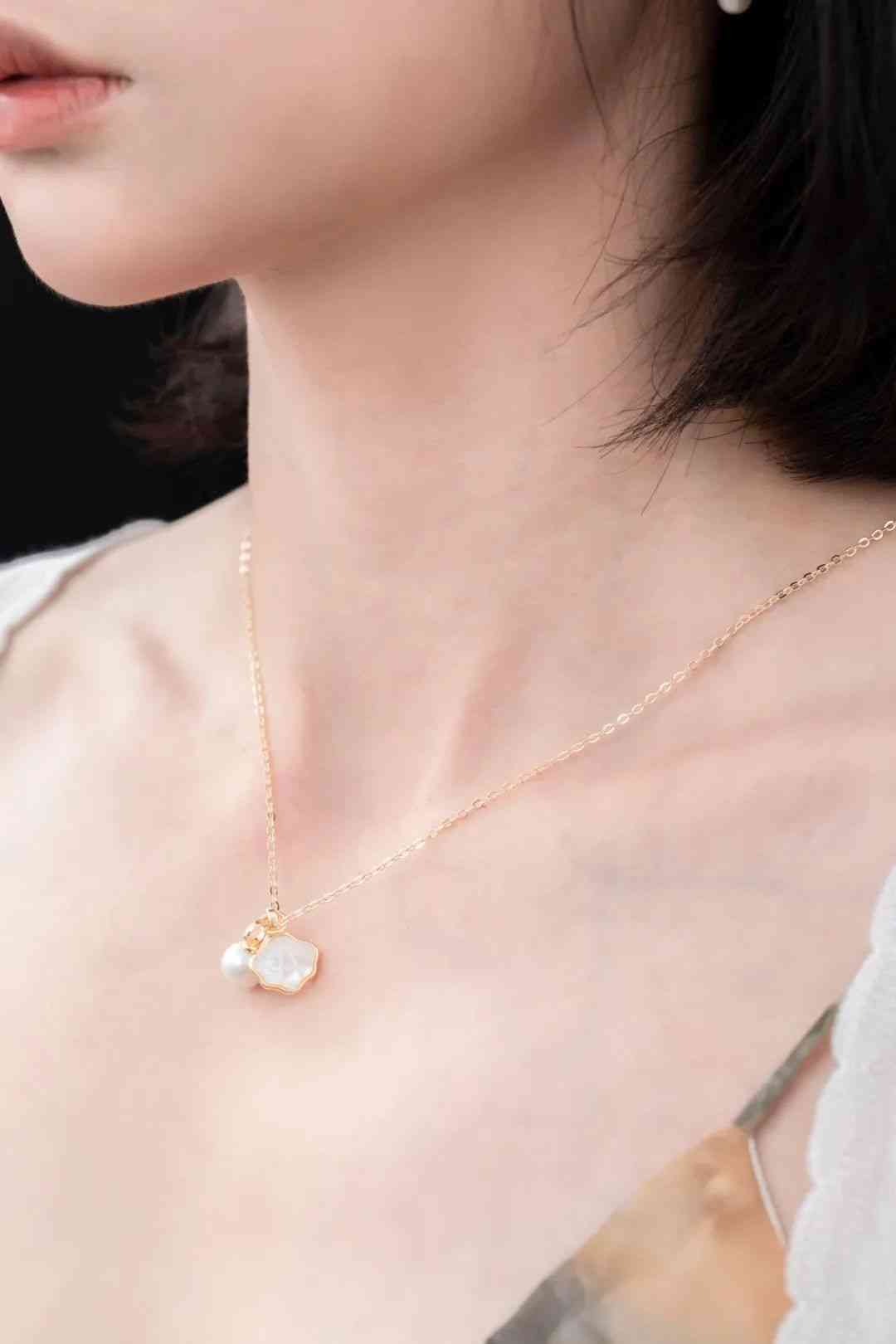 “一輩子”珍珠貝母銅鍍金項鏈 98元