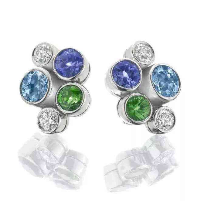 Boodles Raindance水彩畫串珠耳環(huán),上面鑲嵌著沙弗萊、海藍寶石、坦桑石和鉆石(售價3800英鎊)