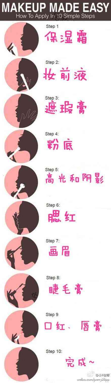 關(guān)于面部底妝的知識(shí)相信大家又有了全新的了解,對(duì)于眉眼唇部的化妝順序,每個(gè)人都有自己的使用習(xí)慣,奈斯就不按自己的想法引導(dǎo)大家了,下面直接分享兩則護(hù)膚化妝順序圖片給有需要的小仙女們,大家可以對(duì)照參考學(xué)習(xí)。