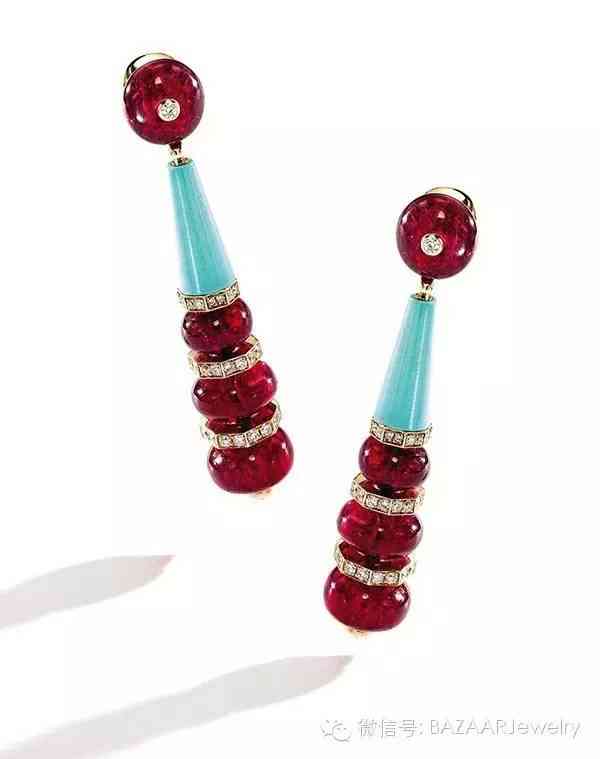18K金鑲尖晶石、綠松石、鉆石耳環(huán)