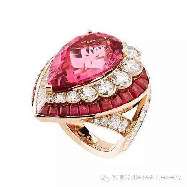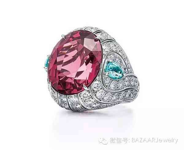 鉑金鑲尖晶石、碧璽、鉆石戒指
