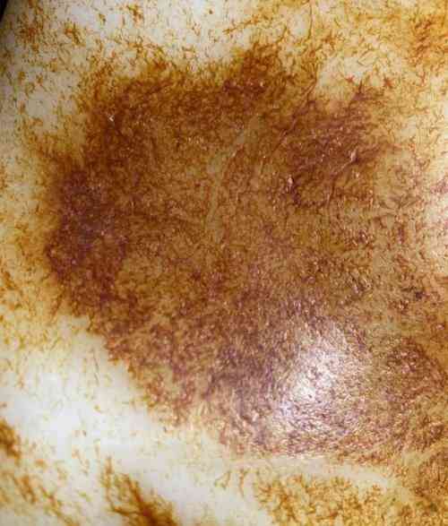 有些假皮還有一個特征,那就是往往是一塊一塊的,而塊與塊之間沒有什么關(guān)聯(lián),看起來就像是隨意涂抹的油漆。就比如這個: