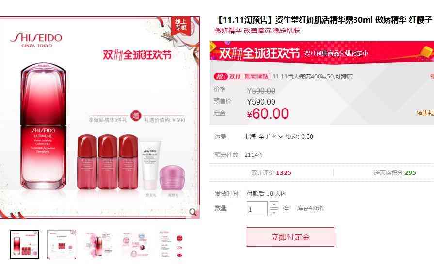 紅腰子最便宜的時候是俄羅斯的資生堂五折,俄羅斯不定期有蘭蔻、紀梵希、雅詩蘭黛、嬌蘭、倩碧、ysl等五折,(紀梵希小羊皮可以140+一支)資生堂、嬌韻詩買一送一等的活動。不過俄羅斯的平時價比其他地方高很多的,可能和國內專柜持平,五折的時候只是低,不至于不要錢。大家可以去找良心俄羅斯代購,如果大家對這個感興趣,可以留言,我會出一個詳細的教程的。目前紅腰子精華在雙十一的優(yōu)惠很給力,30ml的等于買一送一得60ml,75ml的買一送30ml+其他中樣?;究梢院痛弮r格相比。天貓店是有品牌授權的。