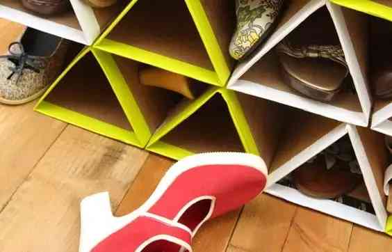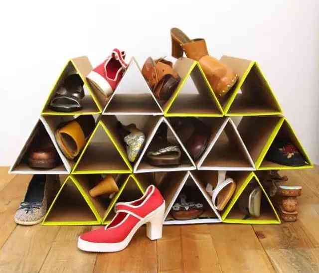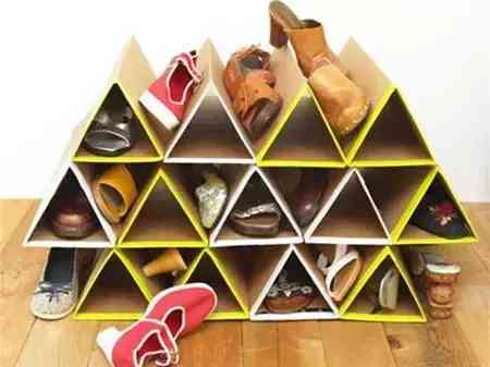 把做好的三角形紙板條堆積起來,固定好,鞋架就做好了,超級(jí)簡(jiǎn)單!