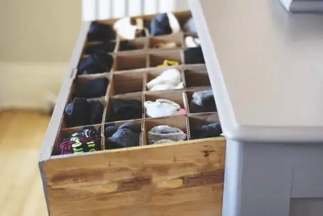 紙箱還能用來做抽屜隔間,剪裁下差不多的寬度,用來收納襪子內(nèi)褲等