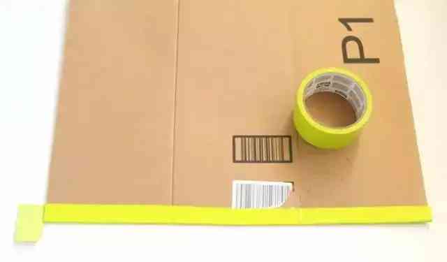 準(zhǔn)備好快遞盒、剪刀、膠帶、顏料